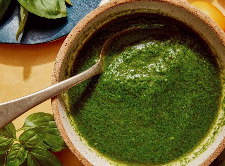 Šis šviežias ir energingas bazilikų vinigretas pagamintas iš šviežių baziliko lapelių, šampano acto ir medaus užuominos, kad...