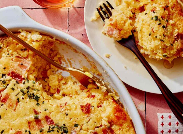 Šiame kukurūzų troškinyje gausu auksinių saldžiųjų kukurūzų, pikantiškų lašinukų ir daug sūrio, kad garnyras būtų sotus garnyras,...