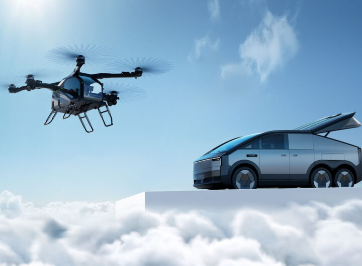Radikalas „Xpeng Aeroht“ sausumos orlaivių vežėjas -Šešių ratų neliko sunkvežimis su įmontuotu moduliniu „skraidančiu automobiliu“-eina į kelią...